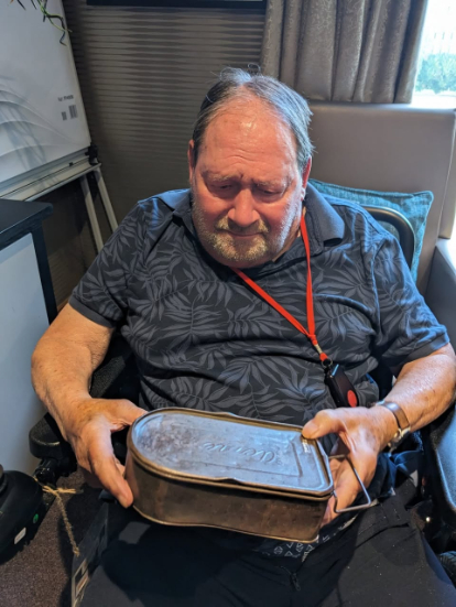 Back at Manor Grange, our reminiscence journey continued with a fascinating visit from the National Mining Museum of Scotland. Their team brought along a carefully selected collection of mining artefacts, allowing residents to handle objects once used in the day-to-day lives of miners and their families. From lamps and tools to keepsakes and household items, each object told its own story, and helped spark many of our own.